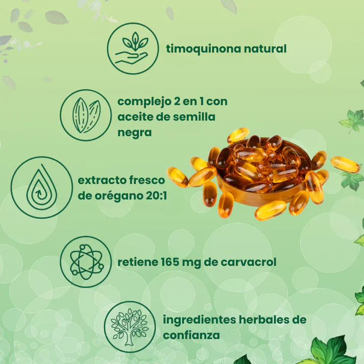 COMBINA ORÉGANO Y ACEITE DE SEMILLA NEGRA PARA SINERGIA | ||