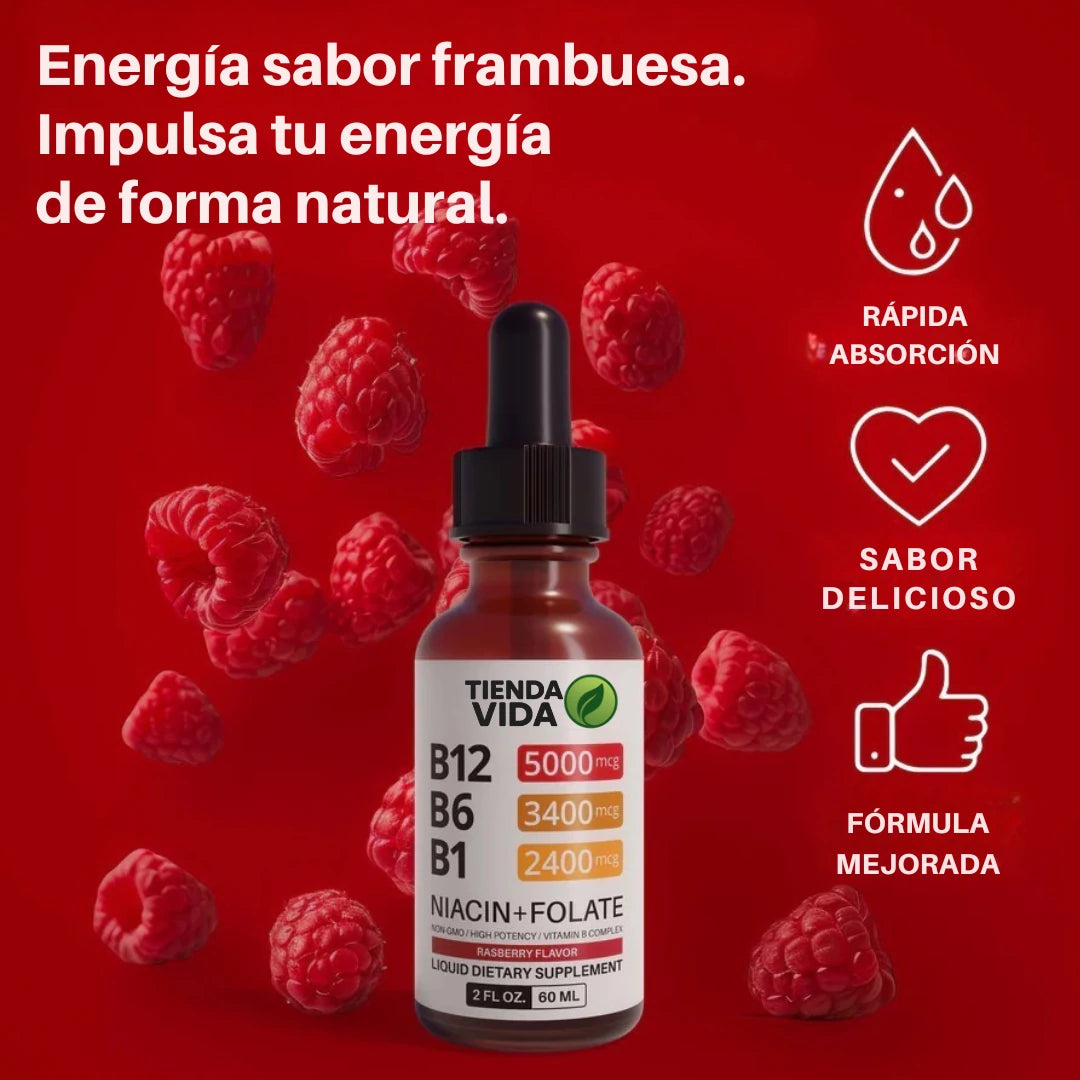 Despídete del bajón de las 2 de la tarde. Nuestras gotas líquidas de Vitamina B12 con sabor frambuesa ofrecen energía limpia y duradera al ayudar a tu cuerpo a producir su propio combustible a nivel celular. Ya sea trabajando, cuidando de tus hijos o dándolo todo en tus entrenamientos, esta fórmula de acción rápida te ayuda a sentirte con más vitalidad, más enfoque y con mayor control, sin la montaña rusa de la cafeína.